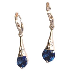 - Elegant earrings, 18 K Gold Plated adorned with Blue Onyx, 1.5'' long. Free standard shipping within US.