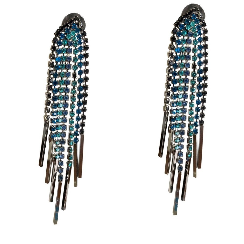 Elegant Blue Glass Dangle earrings, about 3” long.