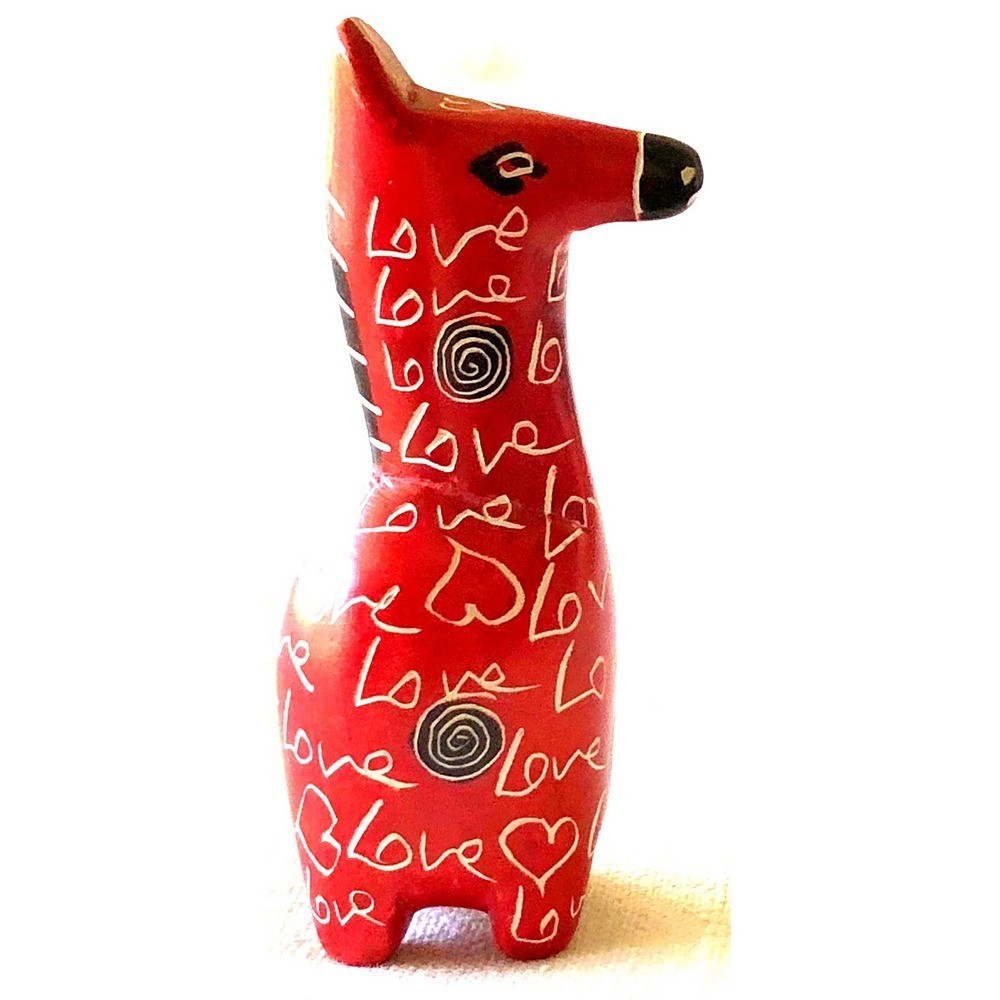 Mini sculpture of cute horse incised with word “Love”. Each soapstone horse is unique in color, ornament, and crafted details.