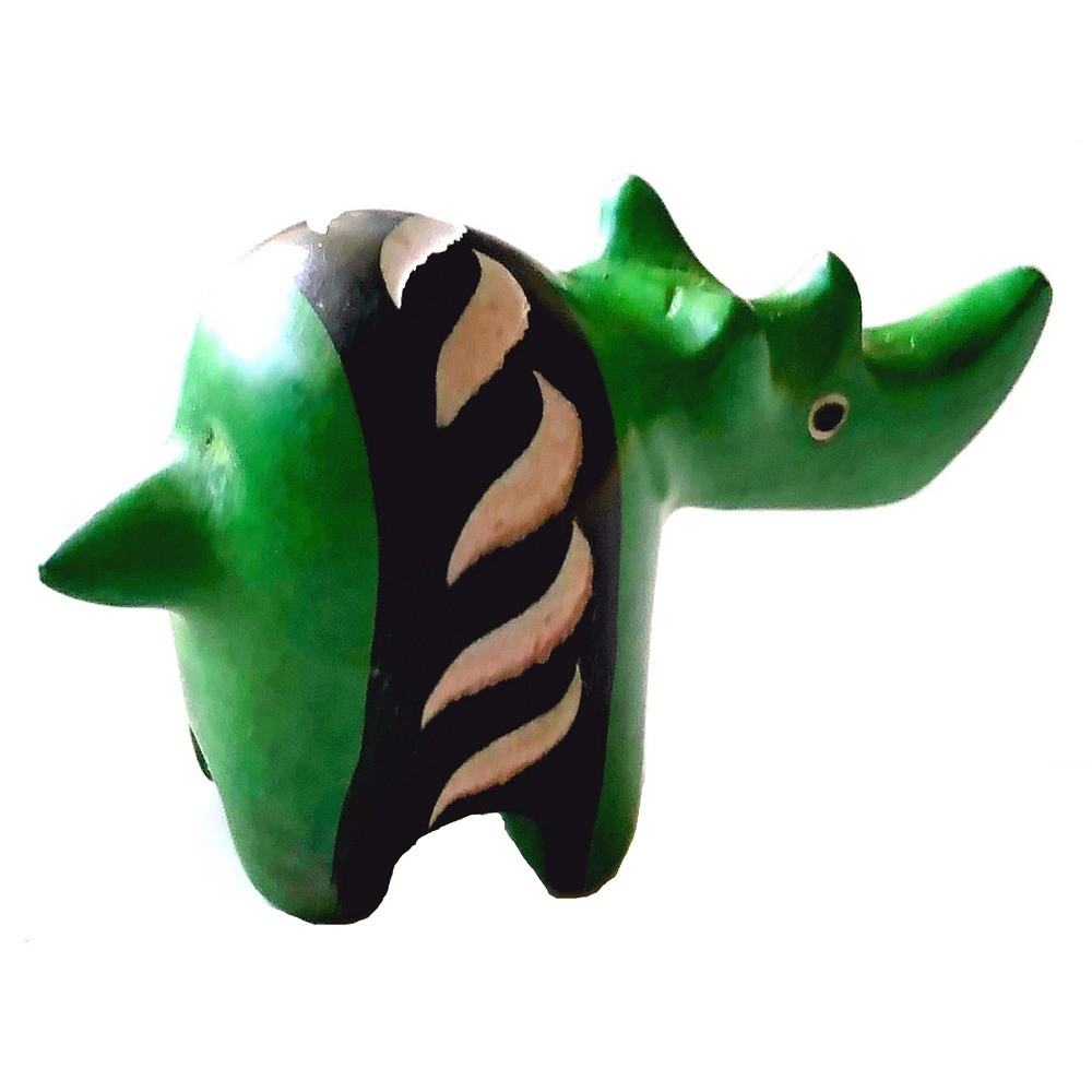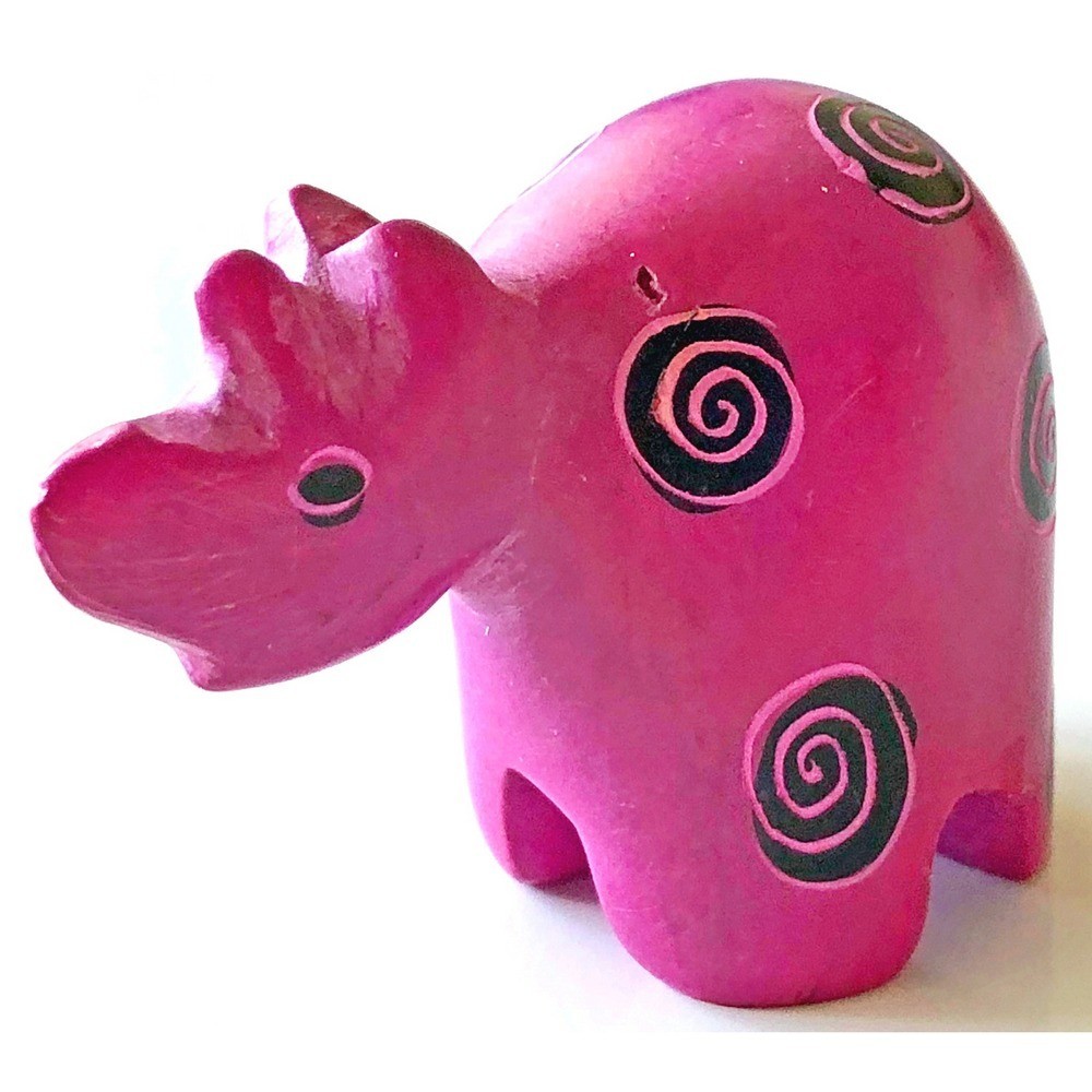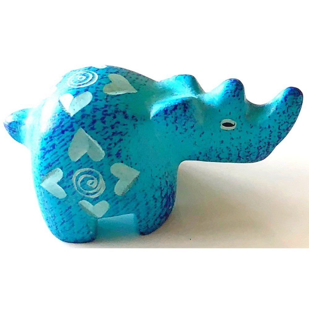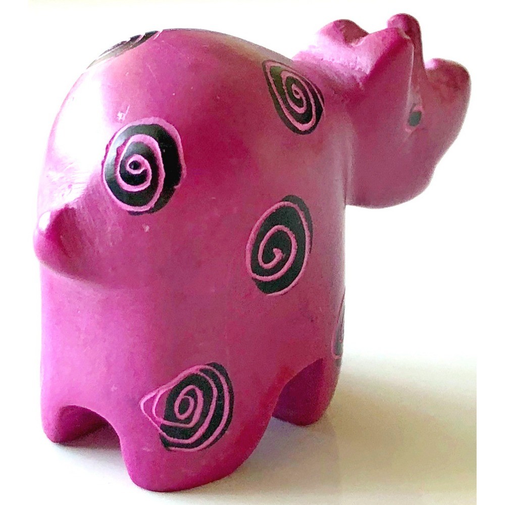 Mini sculpture of cute rhino. Each soapstone rhino is unique in color, ornament, and crafted details.