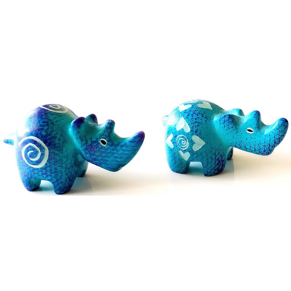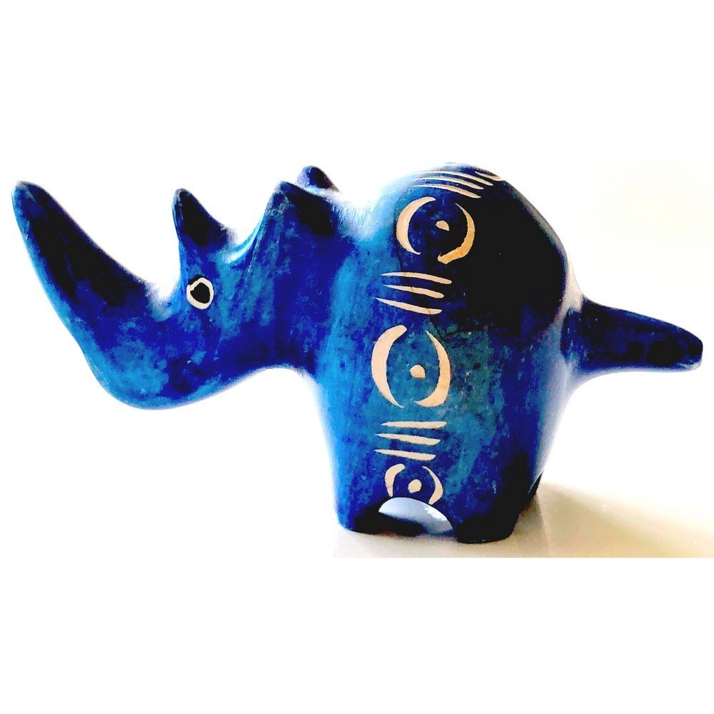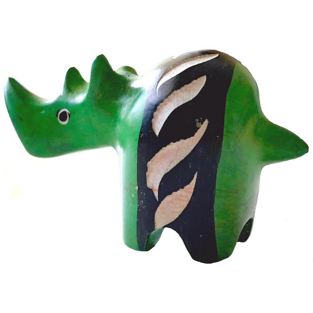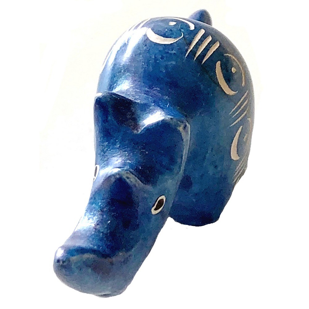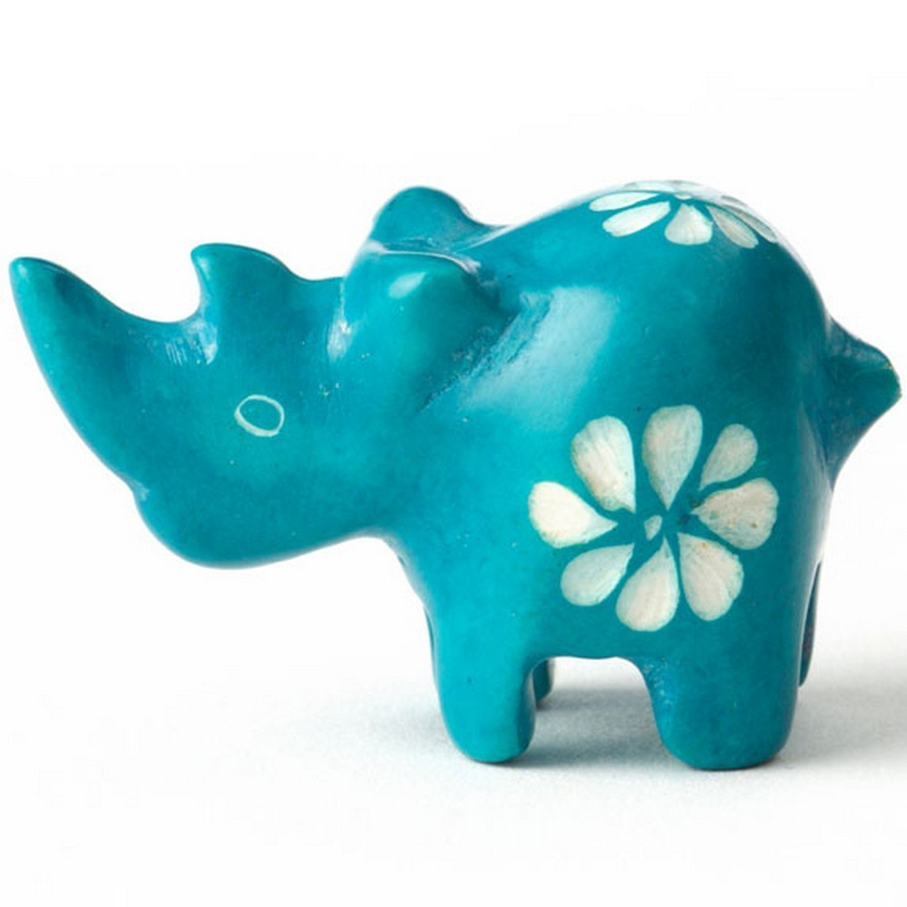 Mini sculpture of cute rhino. Each soapstone rhino is unique in color, ornament, and crafted details.