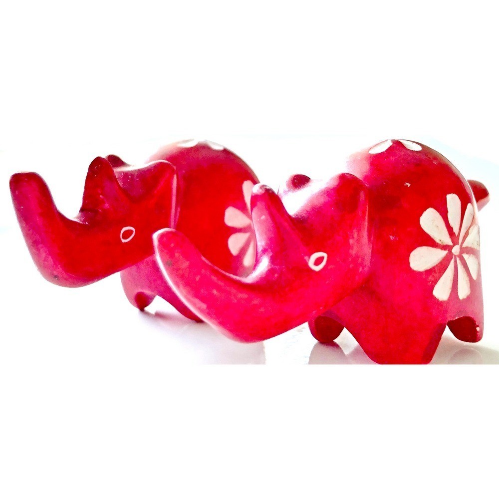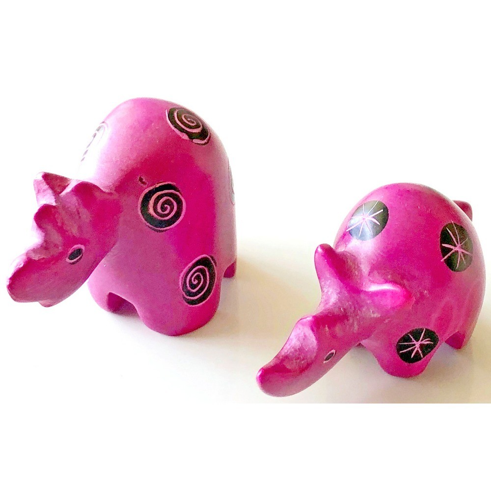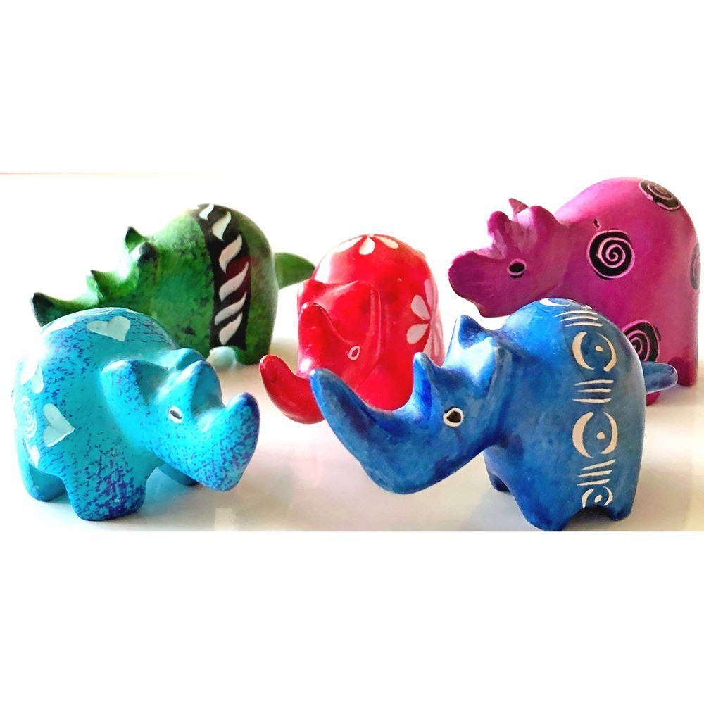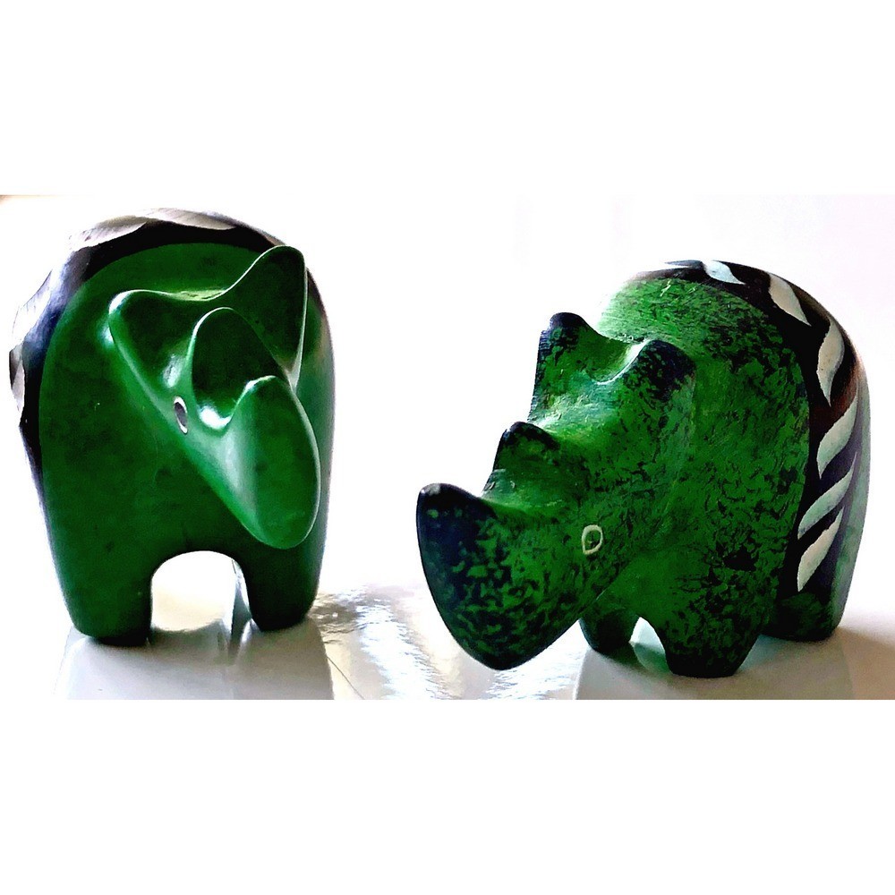 Mini sculpture of cute rhino. Each soapstone rhino is unique in color, ornament, and crafted details.