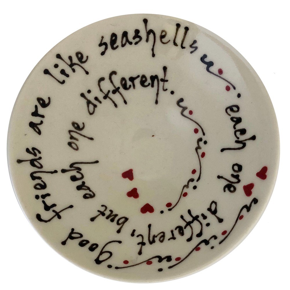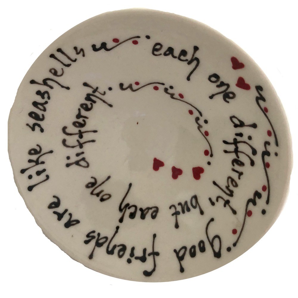 Lovely, beautiful, practical hand made porcelain plate has a wonderful message written across:
