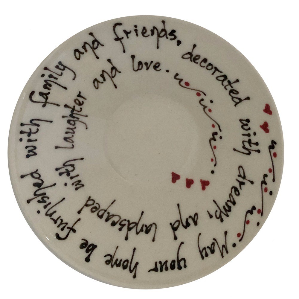 Lovely, beautiful, practical hand made porcelain plate has a wonderful message written across: