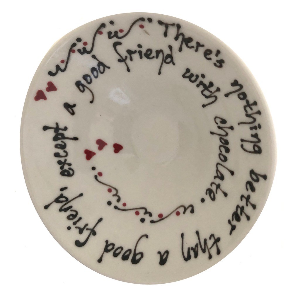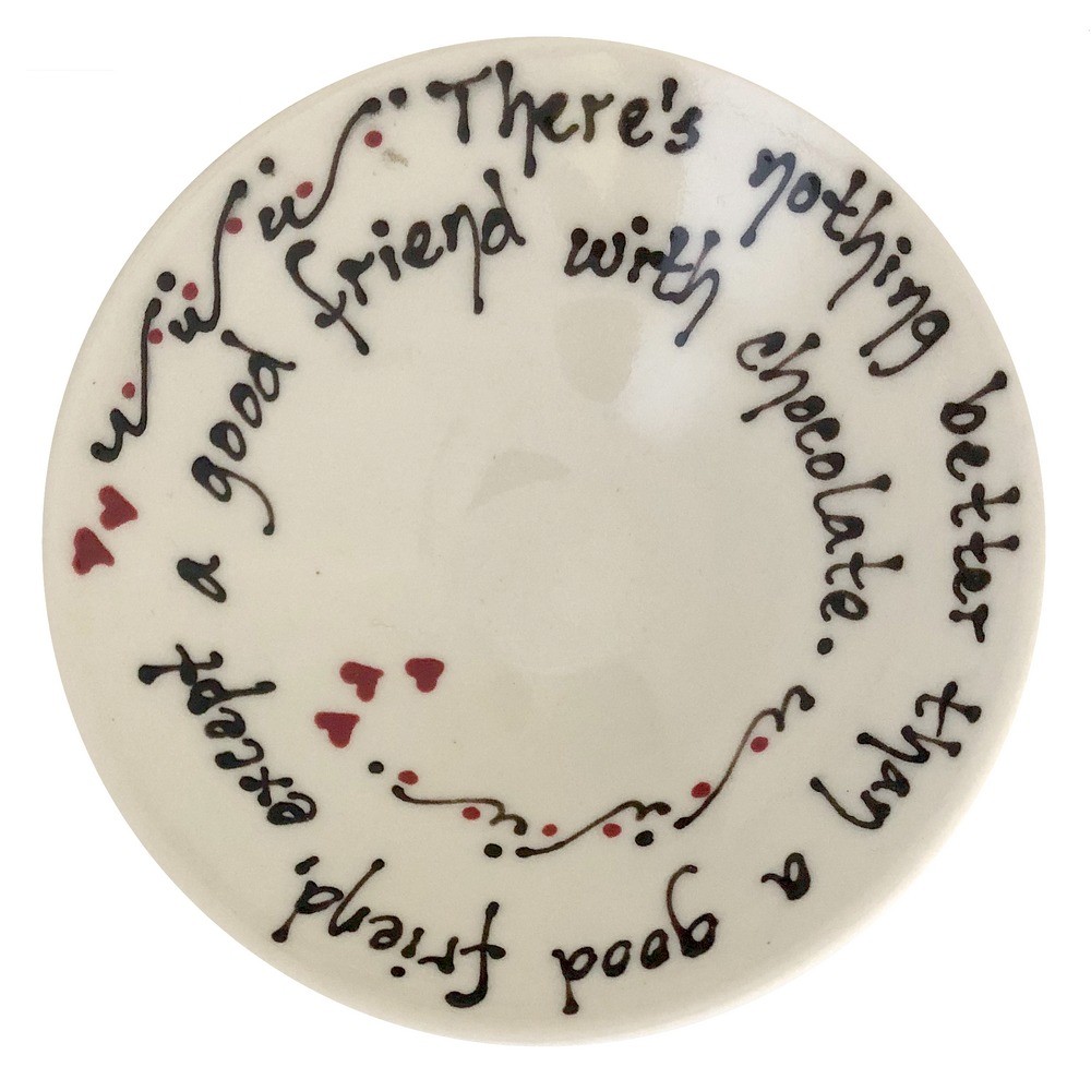 Lovely, beautiful, practical hand made porcelain plate has a wonderful message written across: