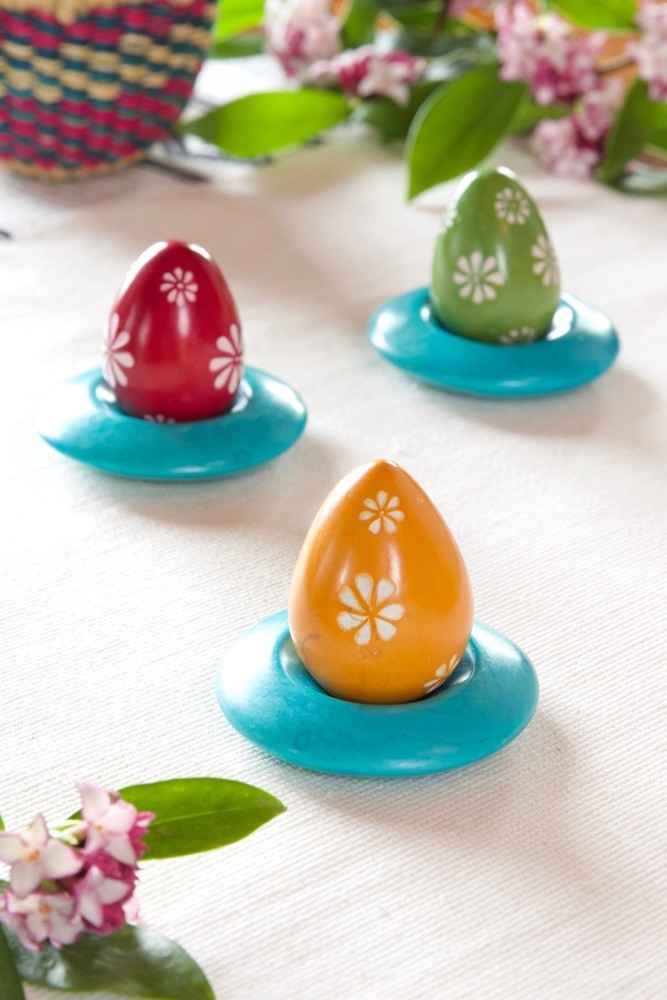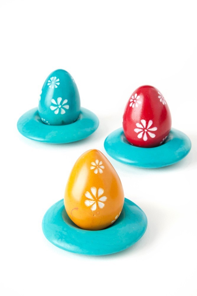 Soapstone rings are designed to complement our small soapstone eggs or any small decorative egg or sphere, each ring is hand dyed to a beautiful aqua blue.