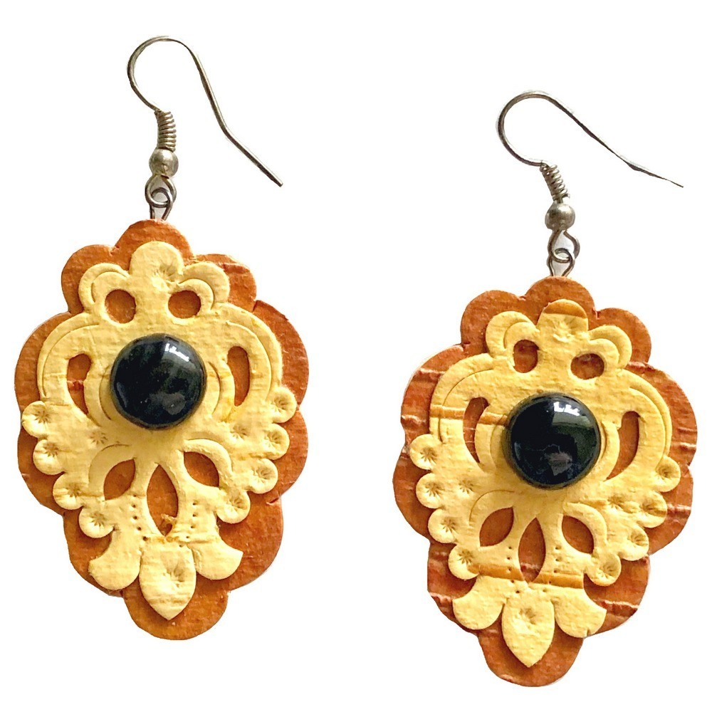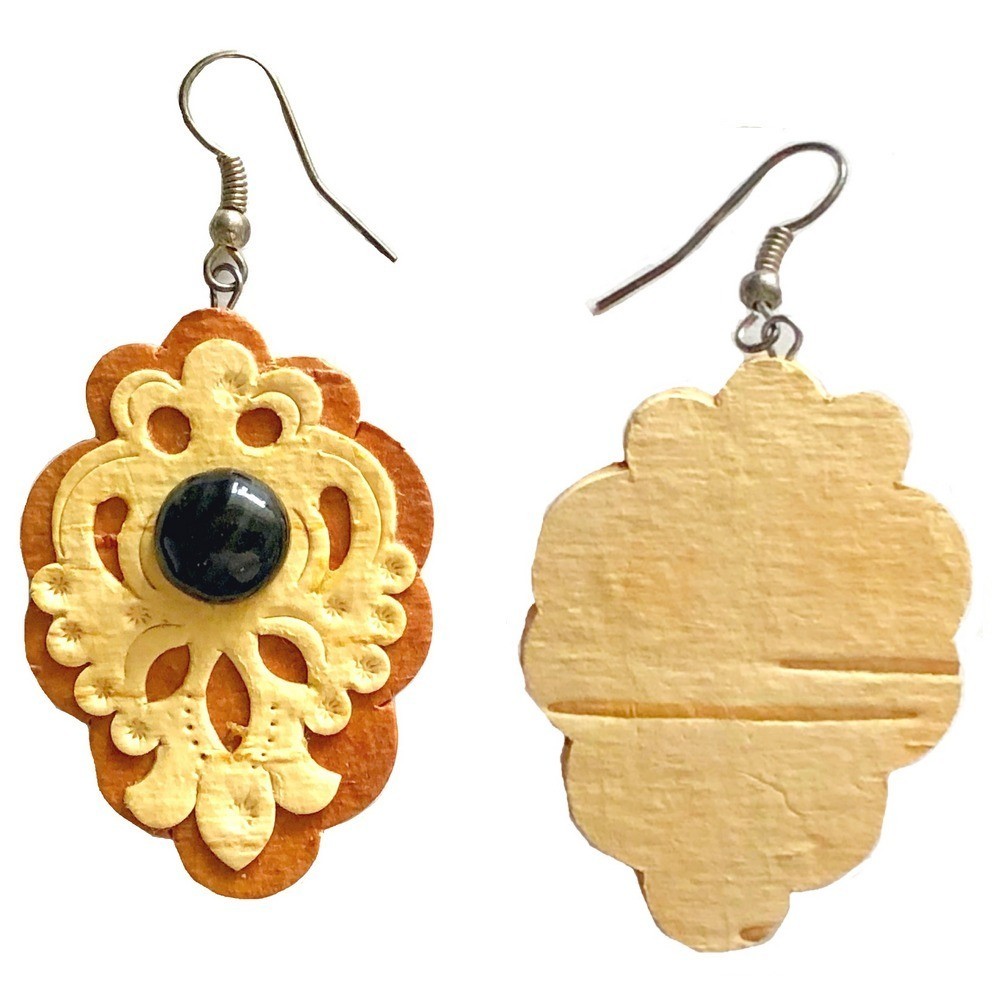 Beautiful, very unusual, really light, handmade Birch Bark Earrings with Aventurine Stone.