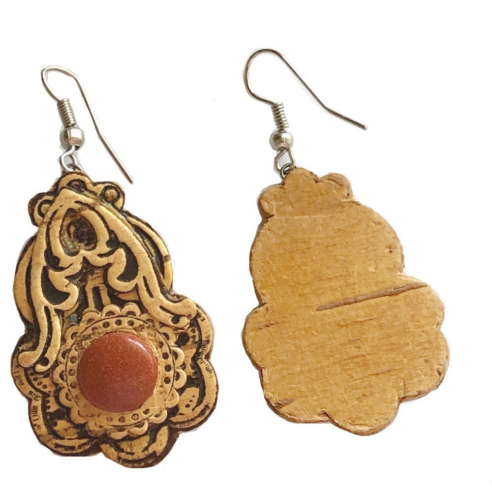 Beautiful, very unusual, really light, handmade Birch Bark Earrings With Aventurine Stones.