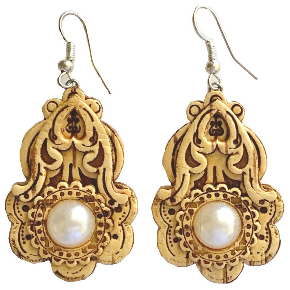 Beautiful, very unusual, really light, handmade Birch Bark Earrings With Nacre (Nacre is also known as Mother of Pearl).