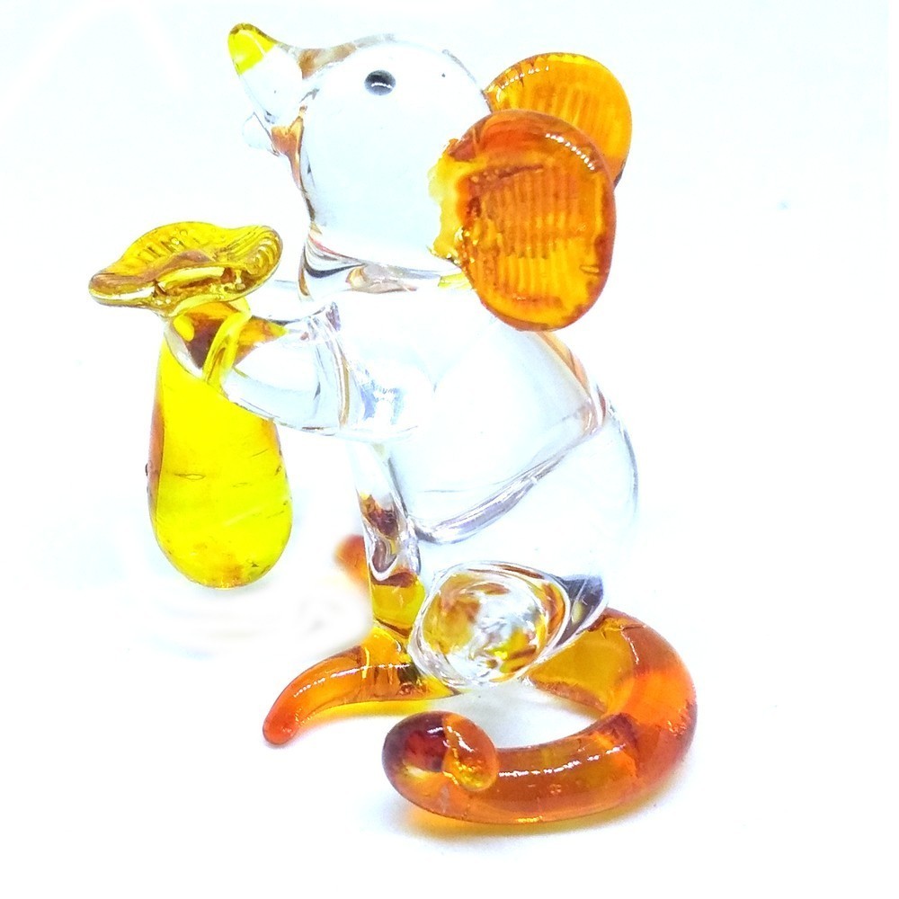 This is hand blown clear glass mouse. It can be a desk buddy or just a fun decoration anywhere in your home.