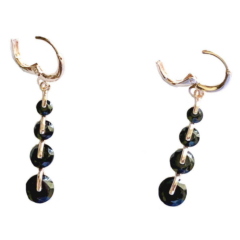 Elegant earrings, 18 K Gold Plated adorned with Black Onyx, 1.5” long.