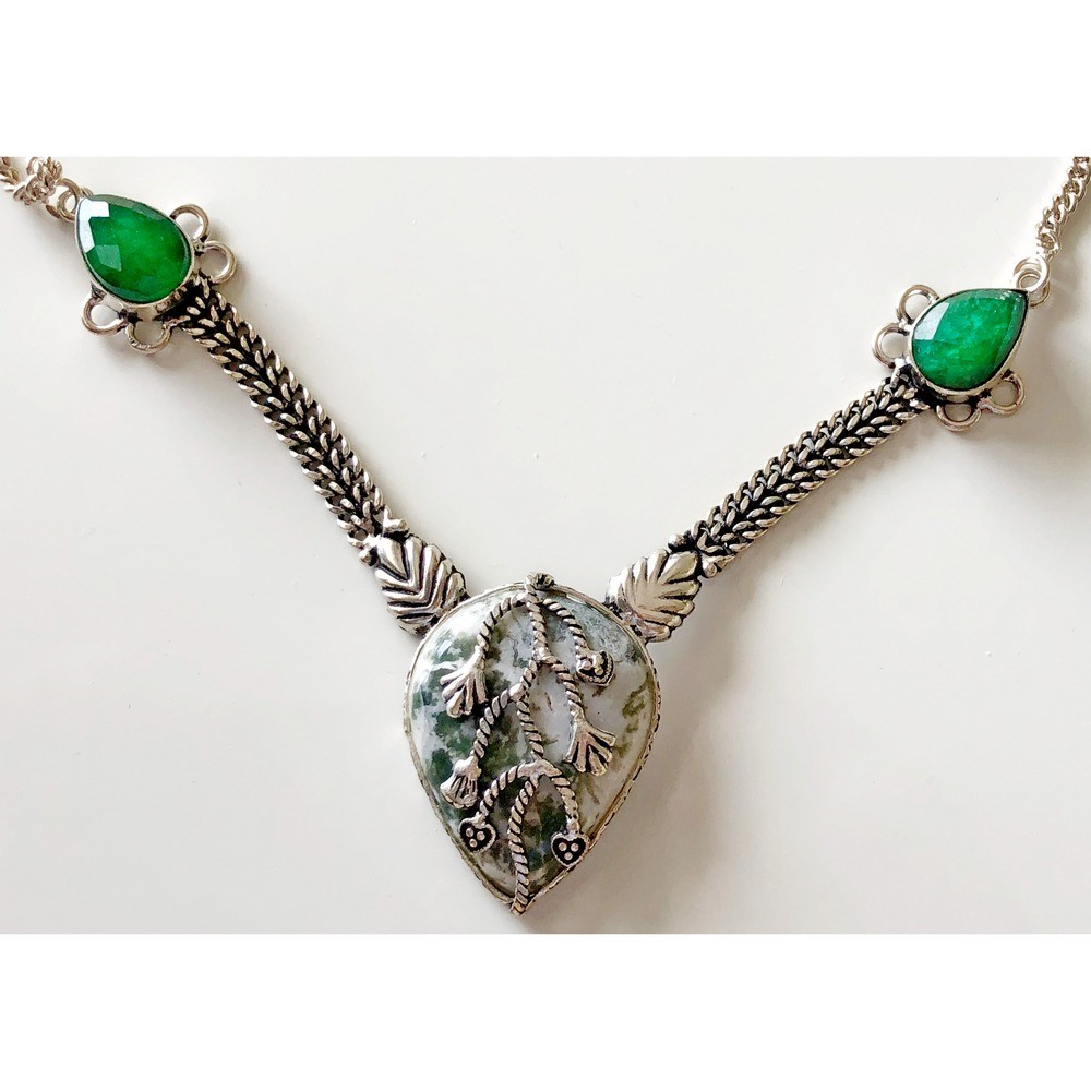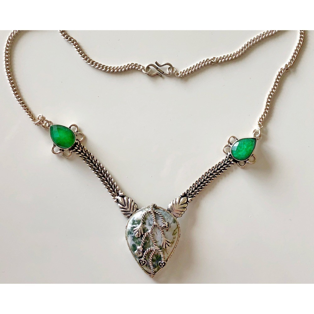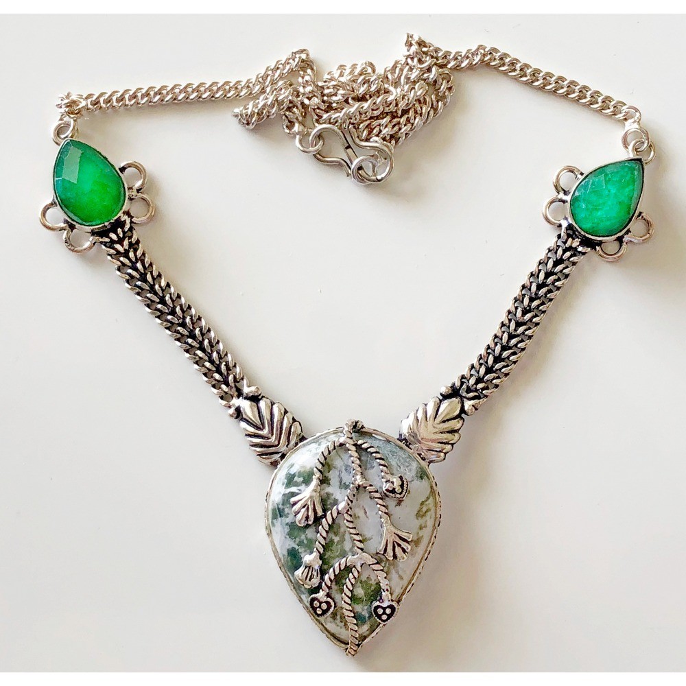 Beautiful handmade 925 Sterling Silver Necklace with Agate and Emerald Stones,