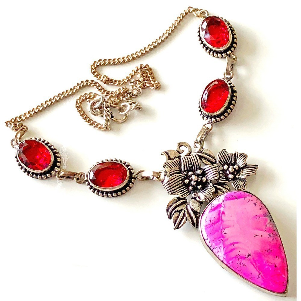 Beautiful handmade 925 Sterling Silver Necklace with Dendrite Opal and Garnet Stones.