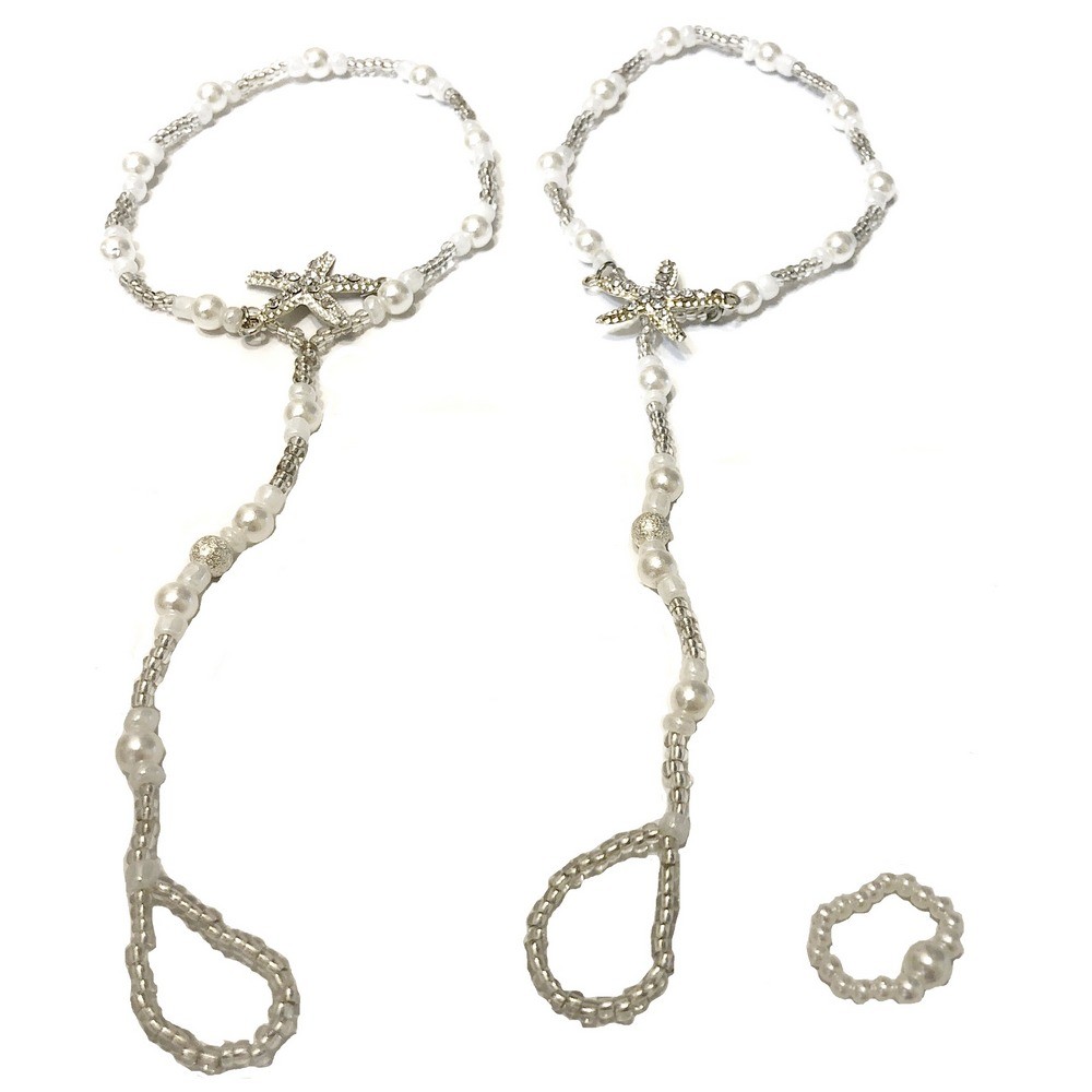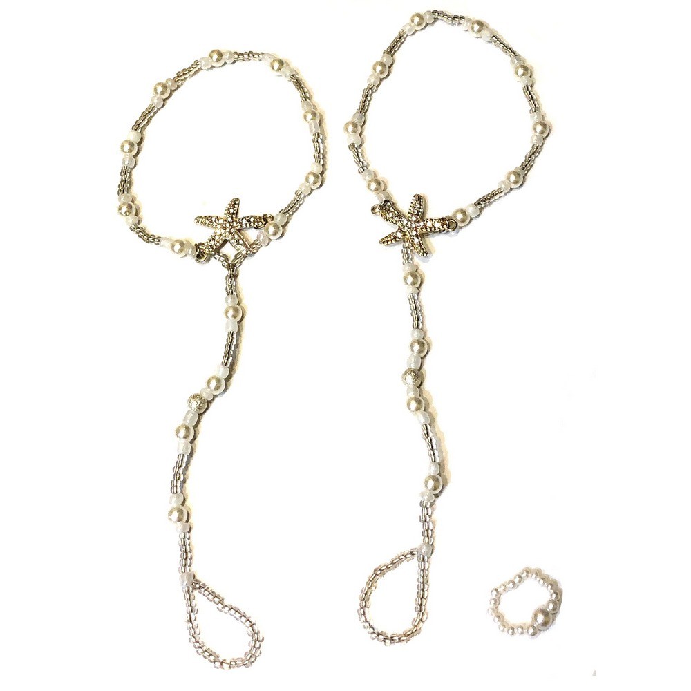 Pair of Pearl Starfish Barefoot Sandals and a Ring