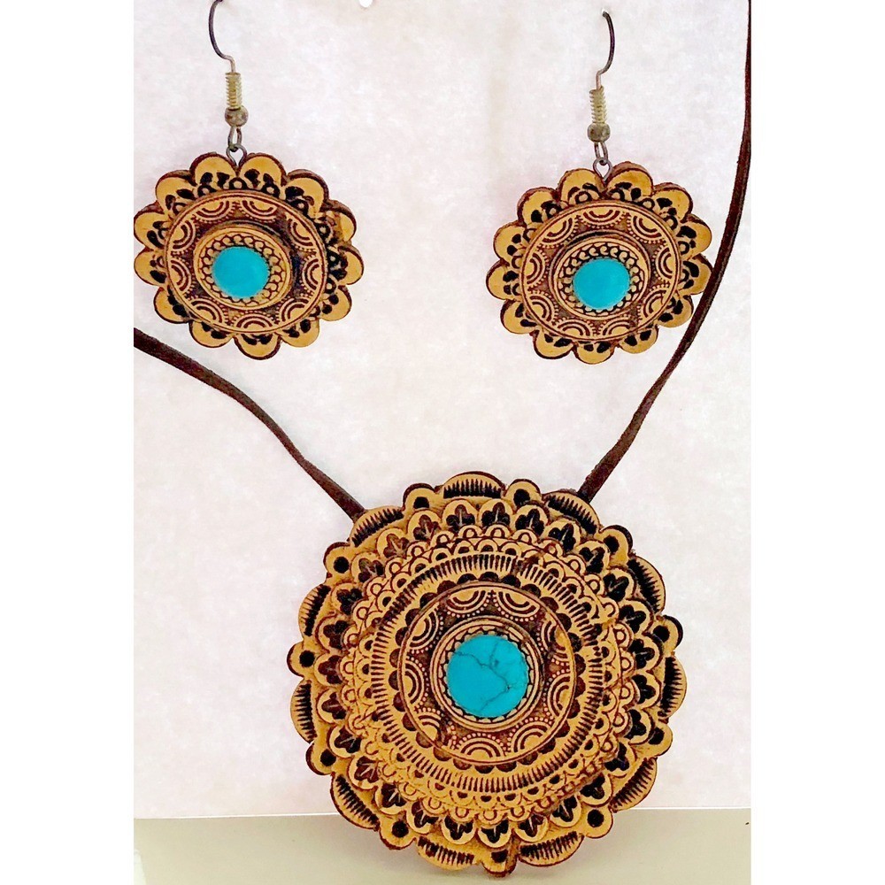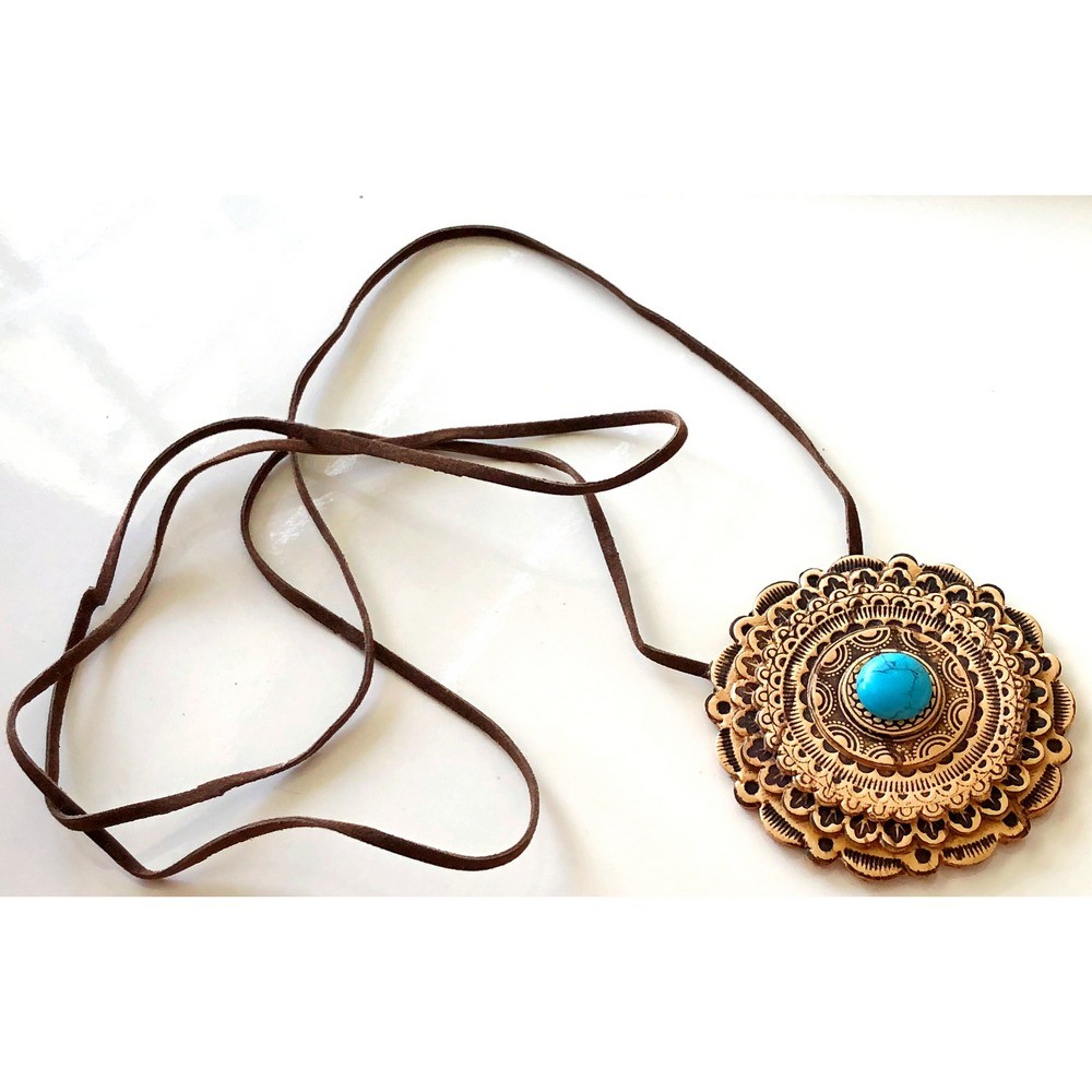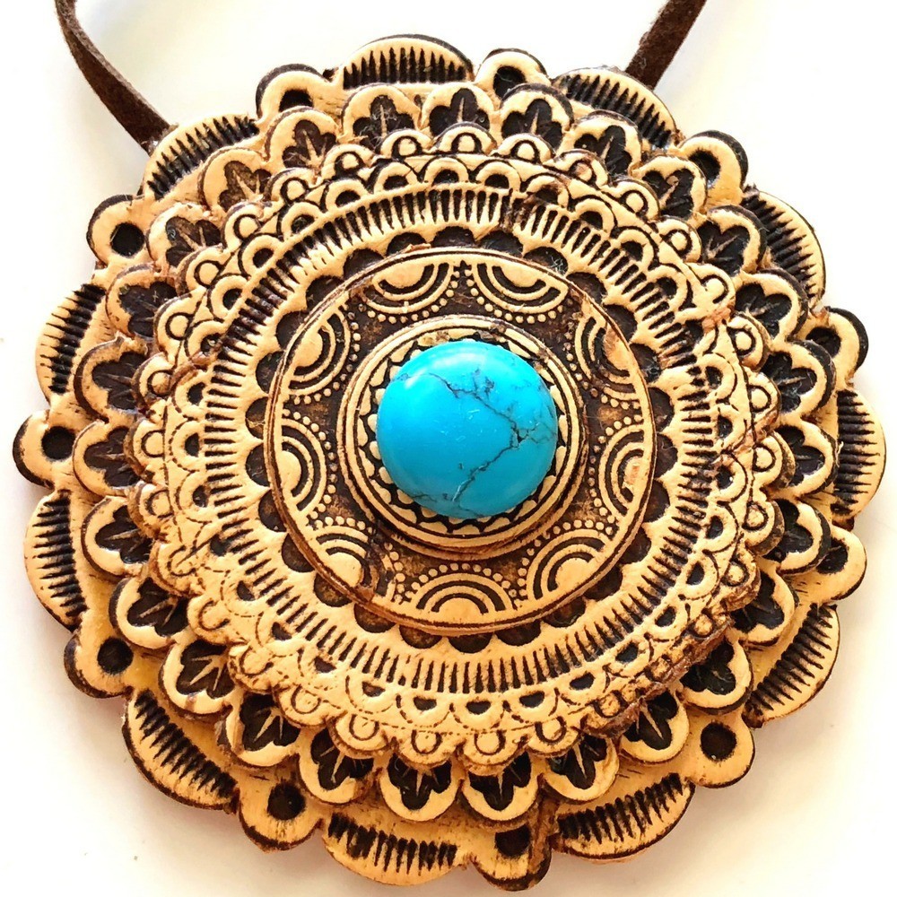 Beautiful, very unusual, really light handmade Birch Bark Pendant With Turquoise Stone.