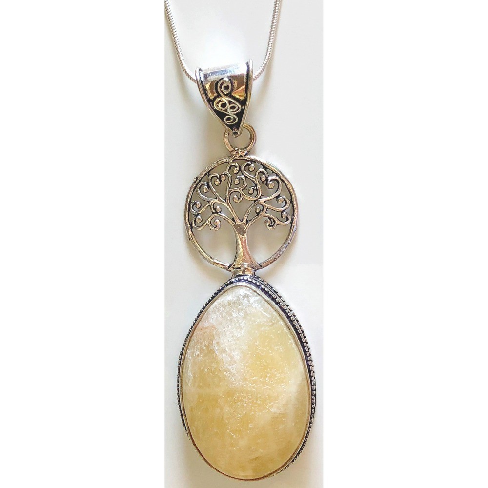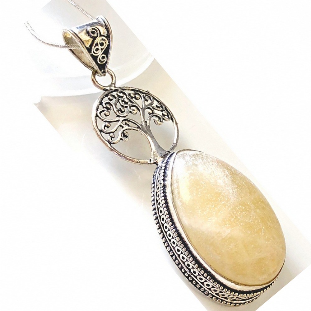 Beautiful handmade 925 Sterling Silver Pendant with Yellow Aventurine Stone and Tree Of Life Decoration,