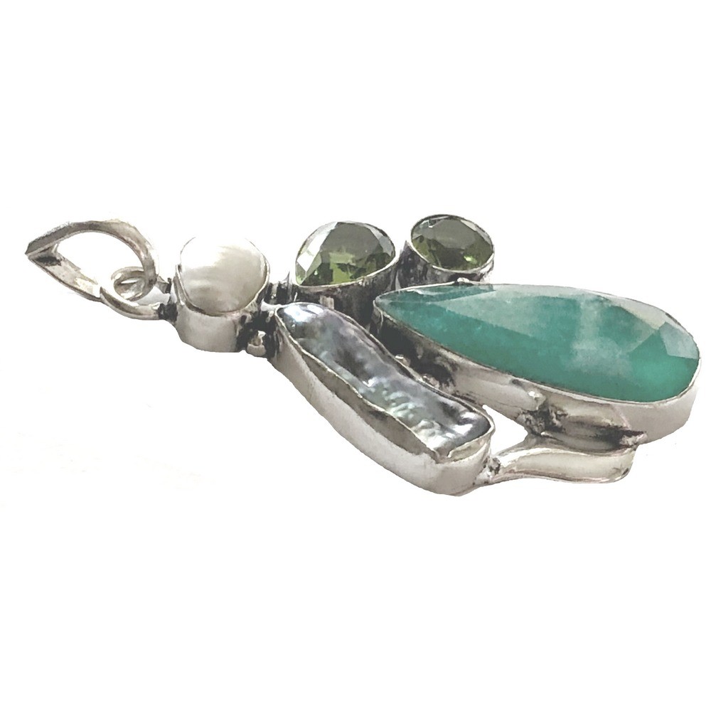 Pendant – Sterling Silver with Emerald and Biwa Pearl