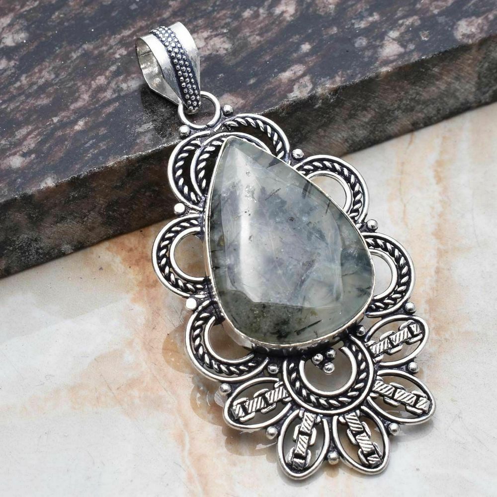 Beautiful handmade 925 Sterling Silver Pendant with Prehnite Stone,