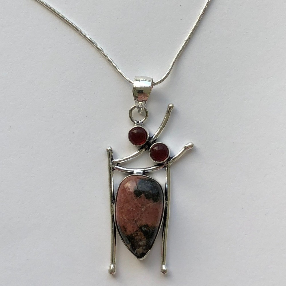 Pendant – Sterling Silver with Rhodonite and Garnet Stones
