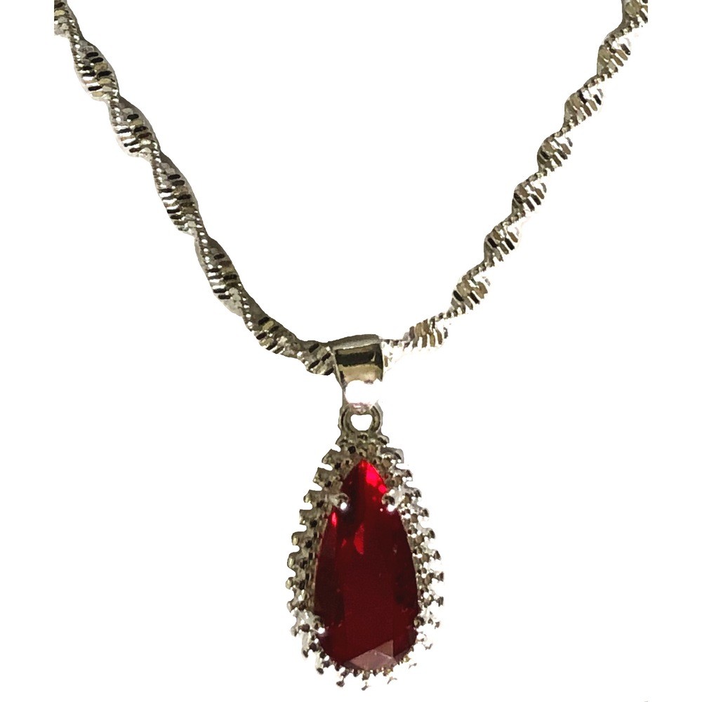 Beautiful Sterling Silver Pendant with Ruby Red Dichroic Glass and silver chain.