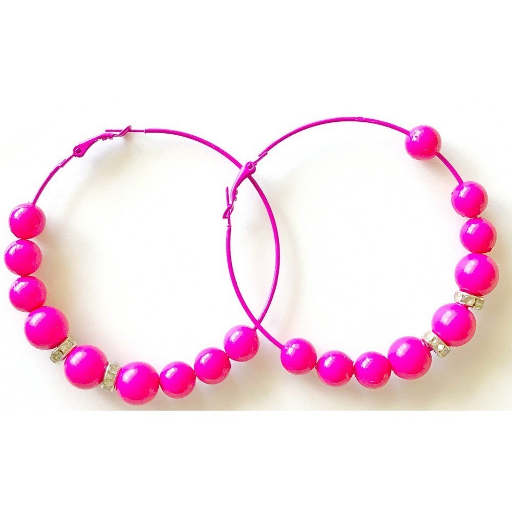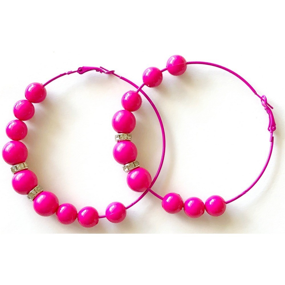Fun, large hoop earrings with pink beads.