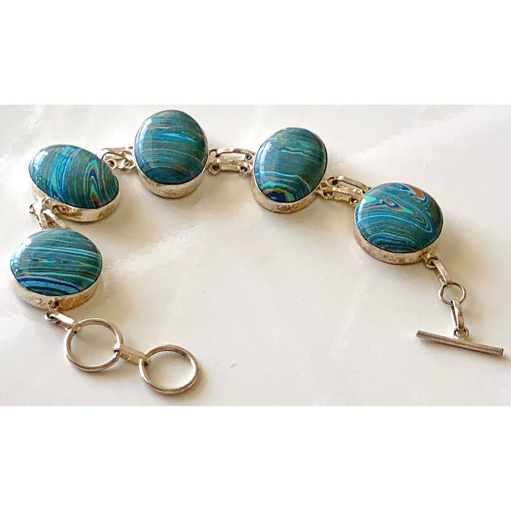 This is beautiful and classy Sterling Silver bracelet with Rainbow Calsilica Stones.