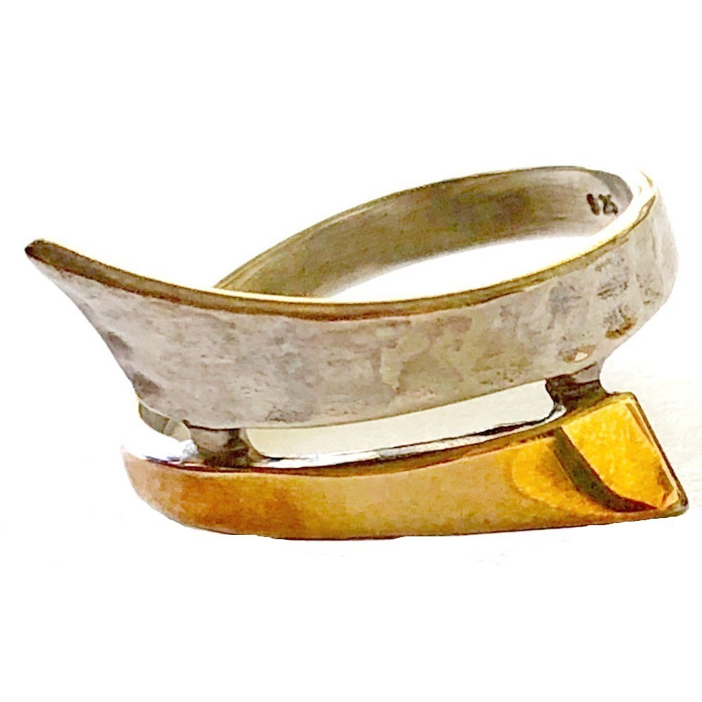 This lovely elegant ring is made with Sterling Silver and Gold .