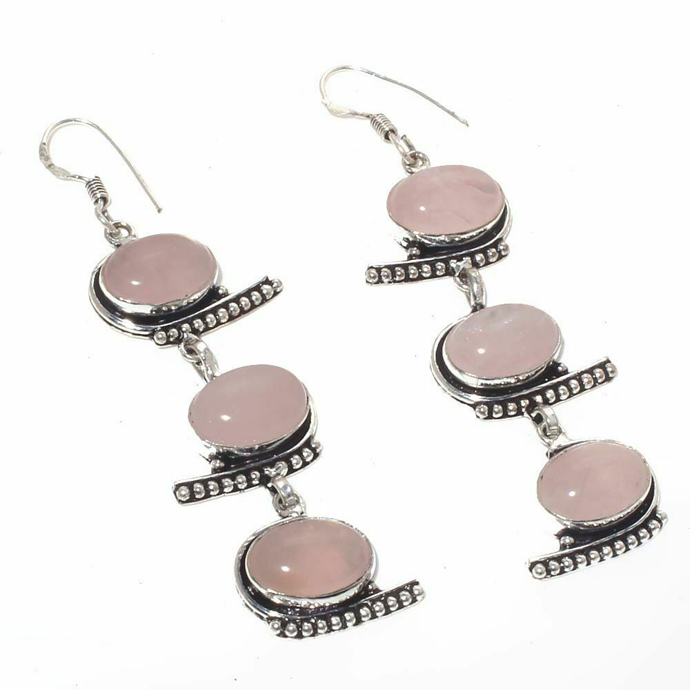 Unique silver earrings with Rose Quartz Stones.