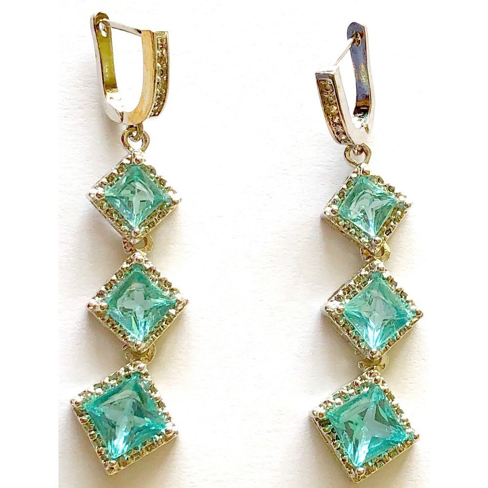 Silver Plated Earrings with Aquamarine Stones