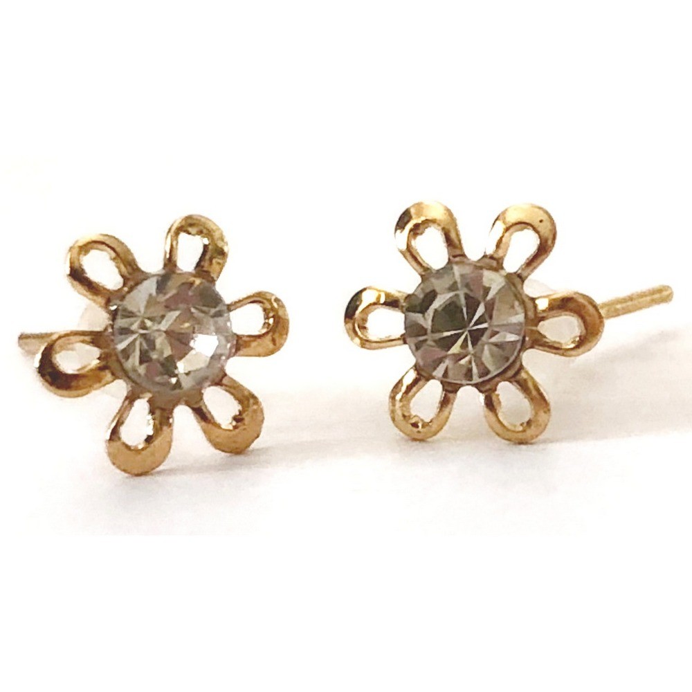 Small Flower Decorated with Rhinestones Stud Earrings, 0.3” wide.
