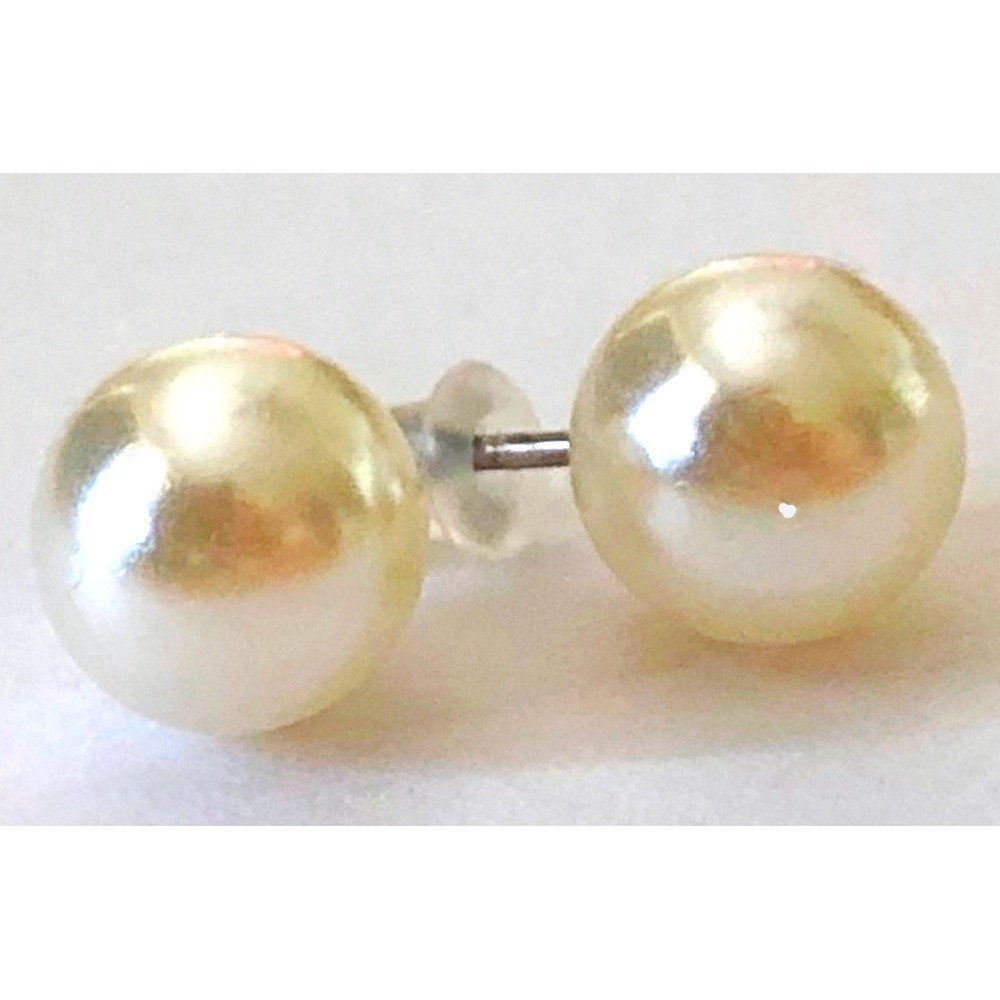 Small Pearl Color Shiny Ball Stud Earrings, 0.3” wide.