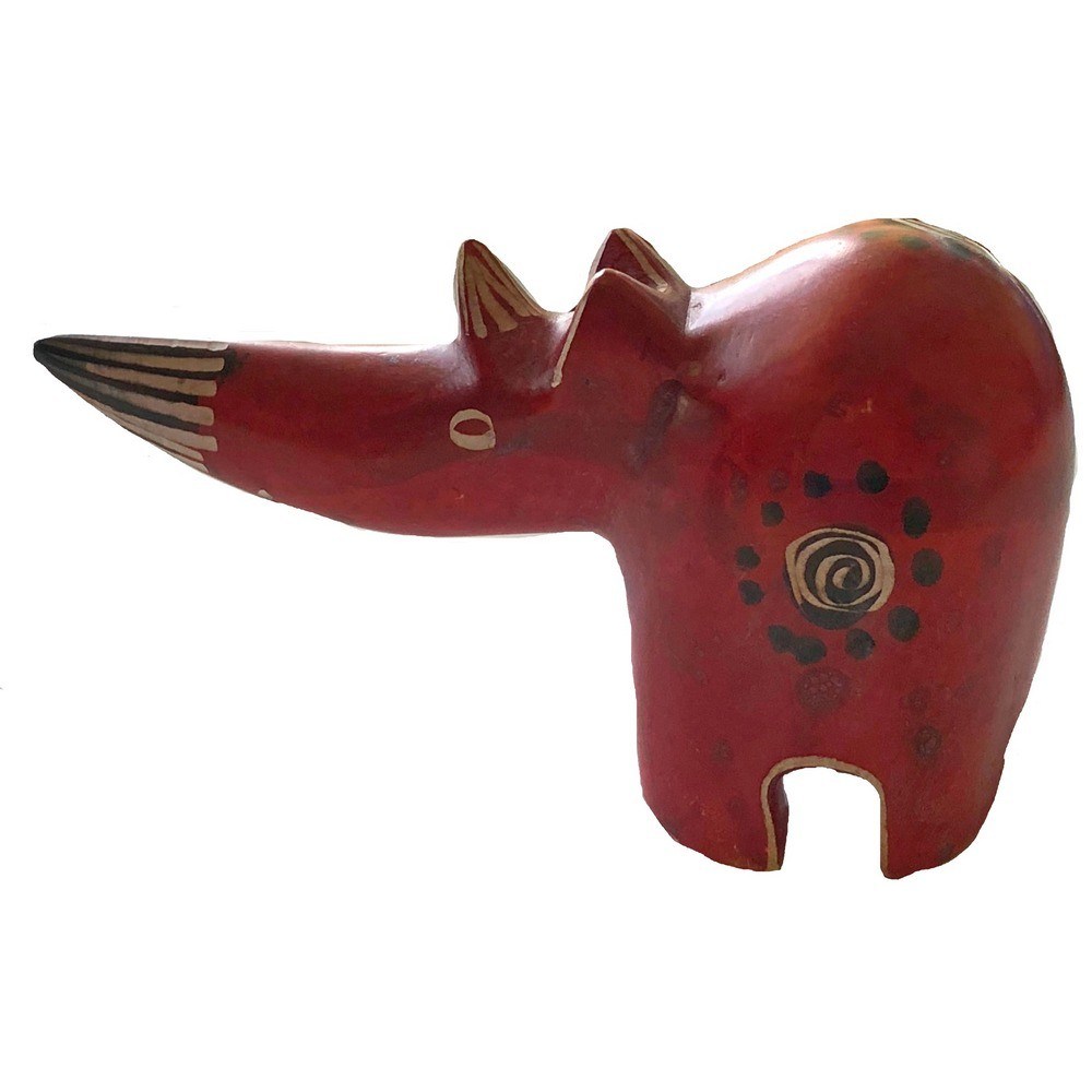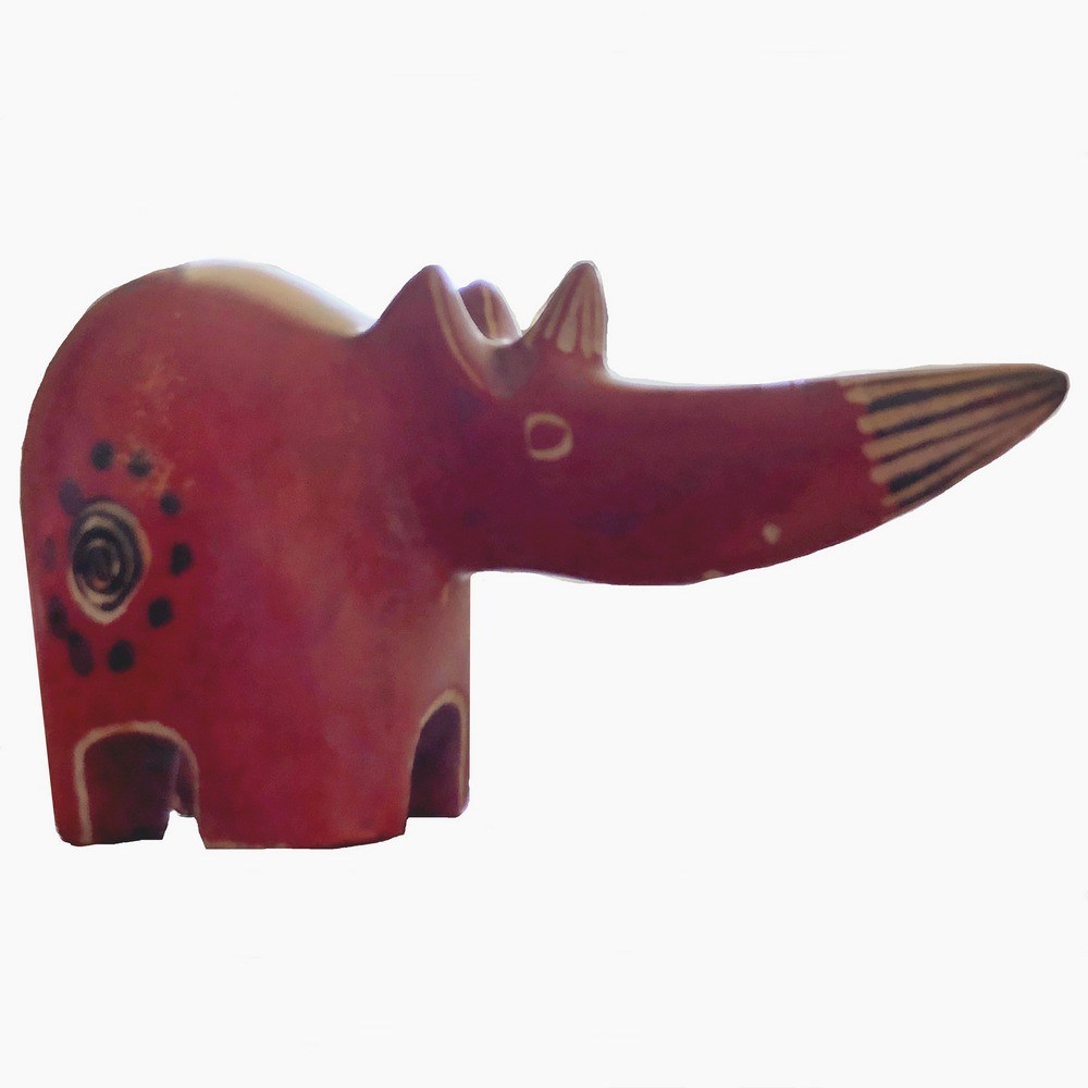 Our hand carved soapstone rhino miniatures make perfect safari keepsakes. Handcrafted by Gusii artisans in Kenya’s Kisii Highlands, each small stone rhino is dyed not-toxic bright red and etched with minimal details.
