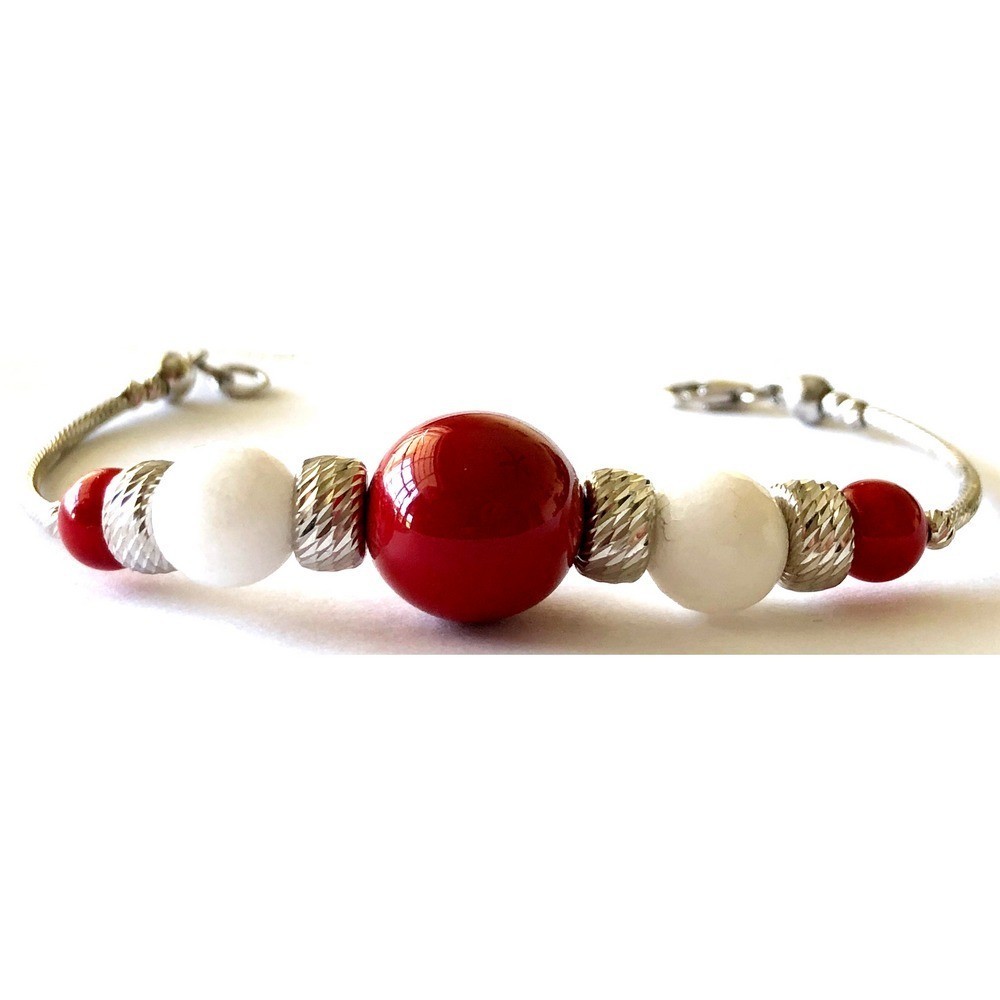 Very interesting sterling silver bracelet with Coral and White Onyx Stones