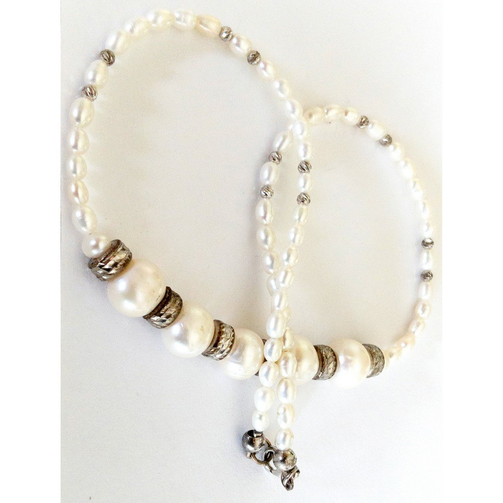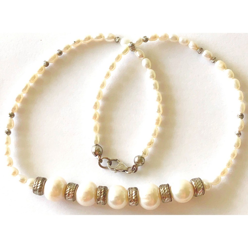Really classy white pearls necklace with sterling silver beads and clasp.