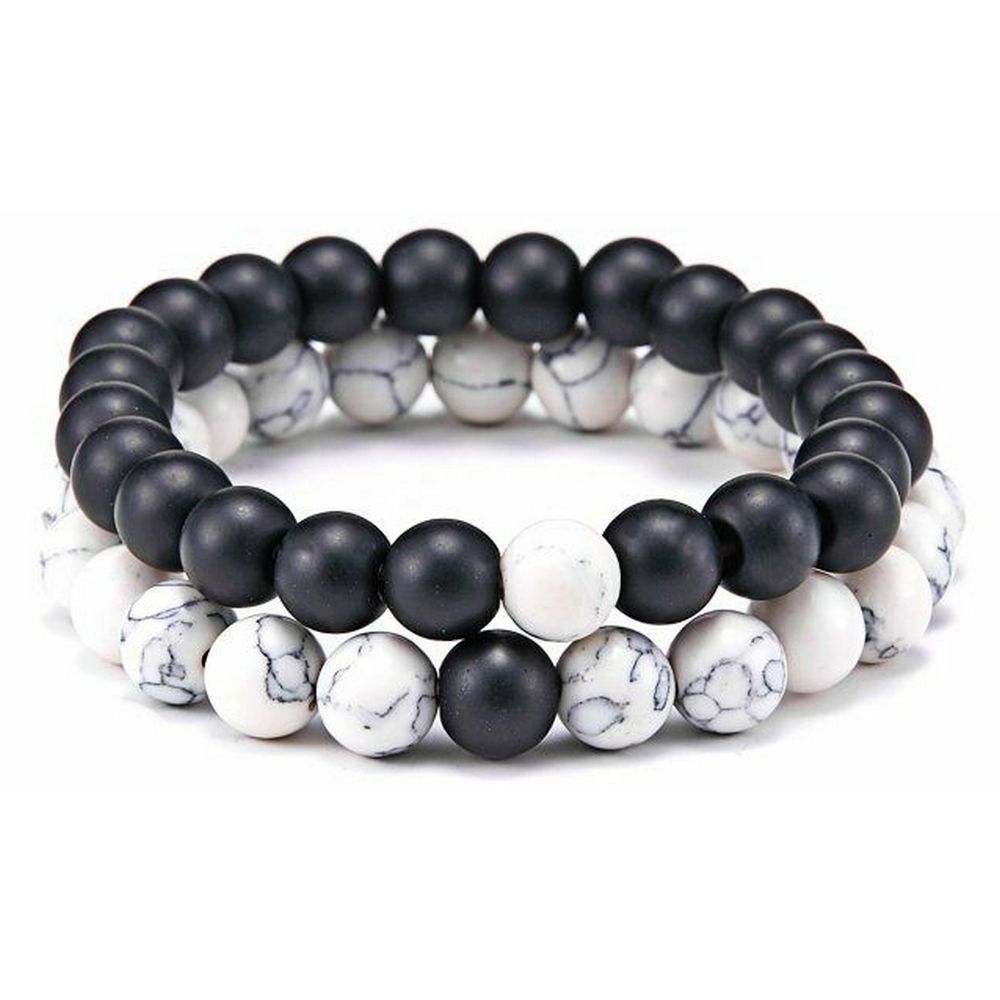 Stone Beads Bracelet – Pair of 2 – White Turquoise and Lava Stones