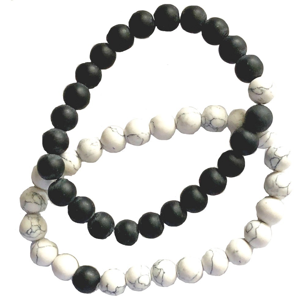 2 Stone Beads Bracelets that complement each other with White Turquoise and Lava Stones